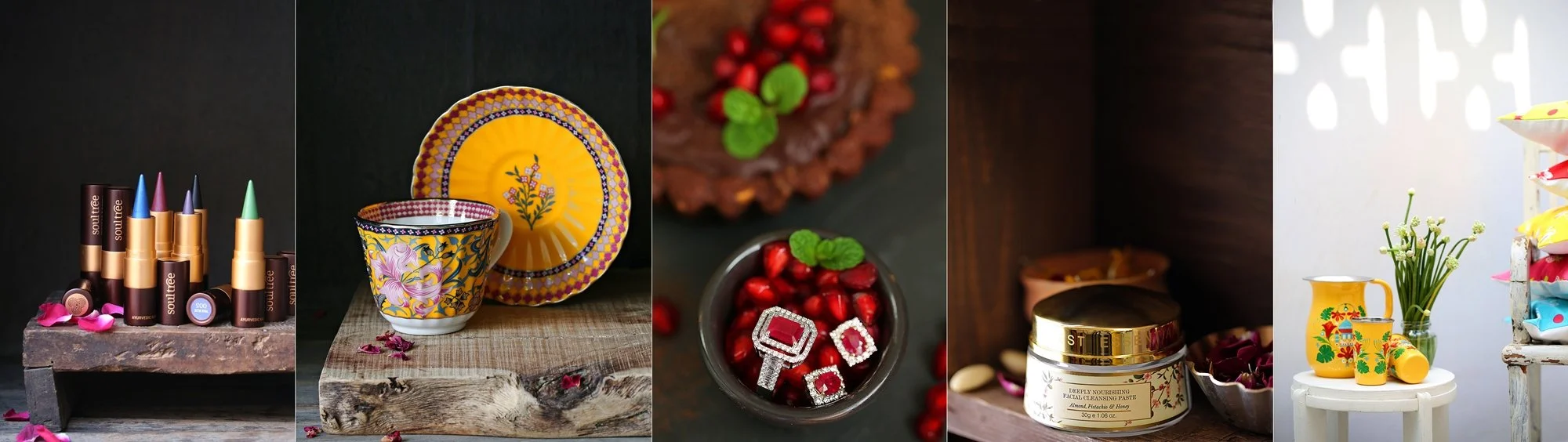 While food and desserts is what I started off with and continue doing, I’ve styled my fair share of products that are not edible yet take my creative touch easily. Pottery, kitchenware, appliances, cookbooks, tea, jewellery, ceramics, copper, skin care, hair care, ayurveda, lifestyle products is some of what I’ve done.